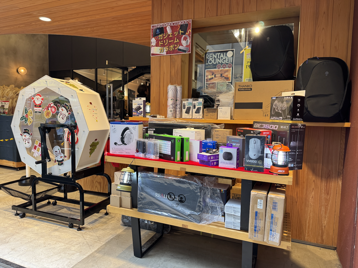 また、各ゲーミングBTO PCメーカーの解説を聞いてくださった方には、巨大ガラガラでゲーミングガジェットなどのプレゼントがゲットできるチャンスが。豪華なプレゼントが当たると評判ですよ〜!