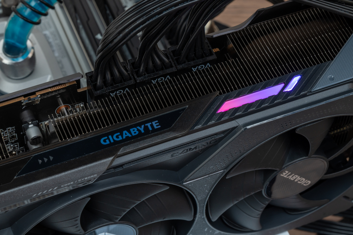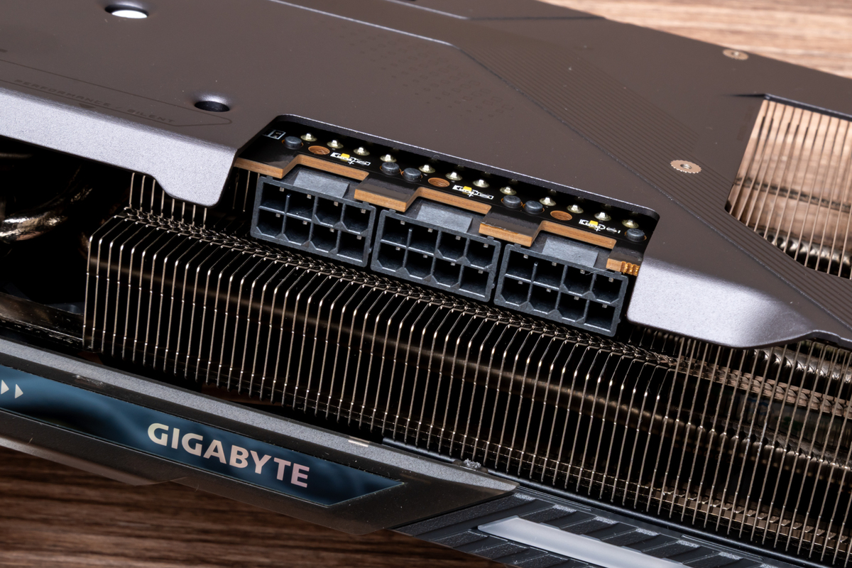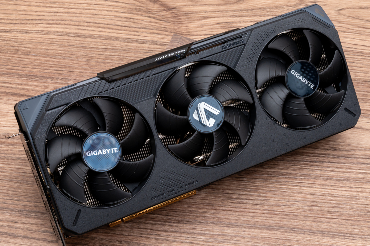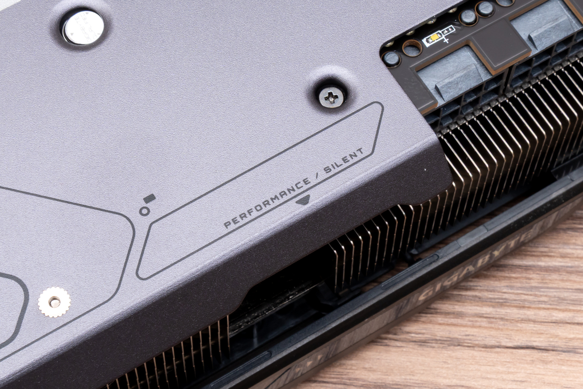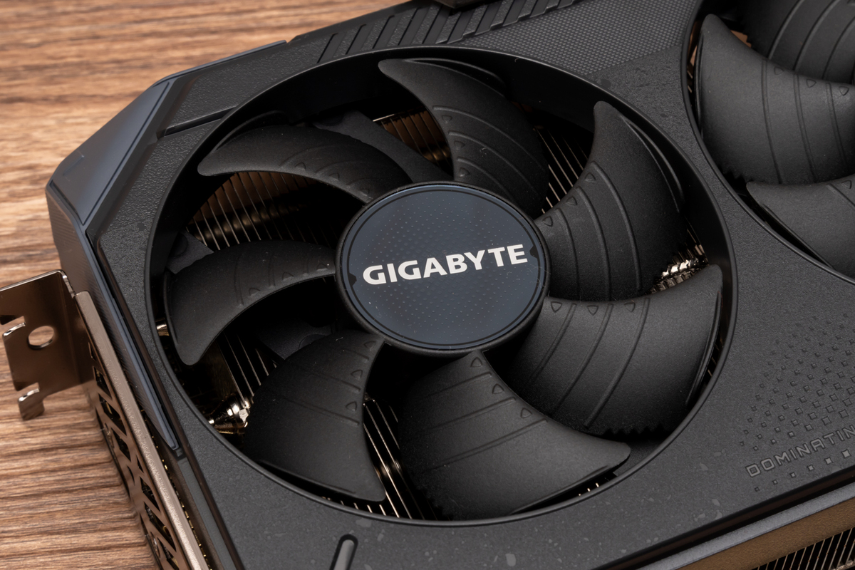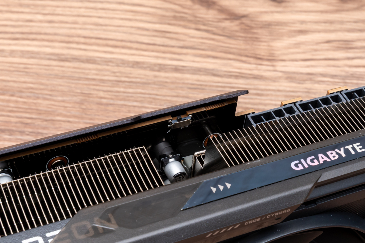 3000MHz超えの高クロックで動作するGPUを冷やすGPUクーラーもポイントだ。GIGABYTEおなじみの冷却システム「WINDFORCEクーリングシステム」を採用し、独特な形状のブレードを採用するホークファン×3基をはじめ、GPUとメモリーチップの熱を効率良くヒートシンクへと送る大型ベイパーチャンバーと、銅製コンポジットヒートパイプで構成されている。