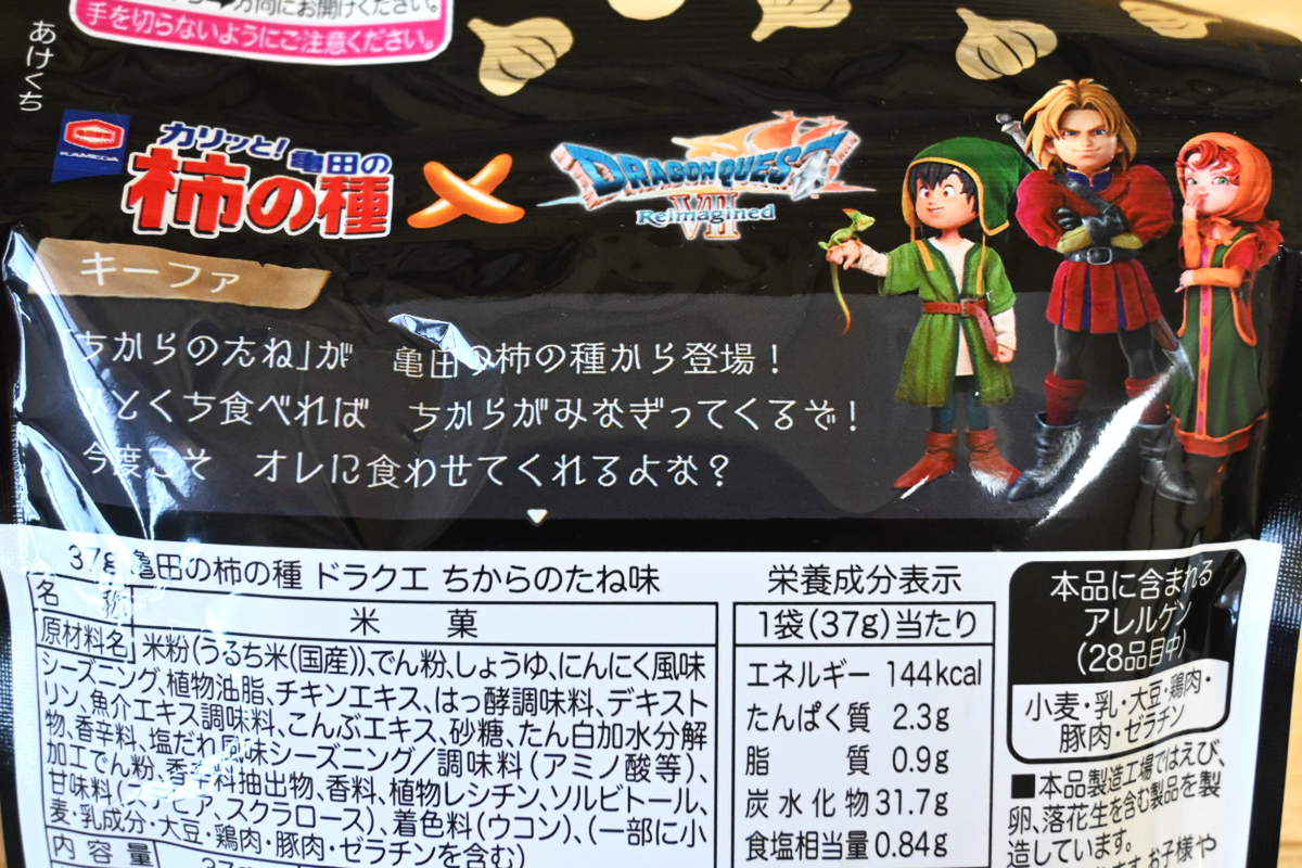 ゲーム「ドラゴンクエスト」シリーズの最新作「ドラゴンクエストVII Reimagined(リイマジンド)」が、2月5日よりマルチプラットフォームで発売されるのにあわせ、柿の種でおなじみの亀田製菓とコラボした商品のようです。