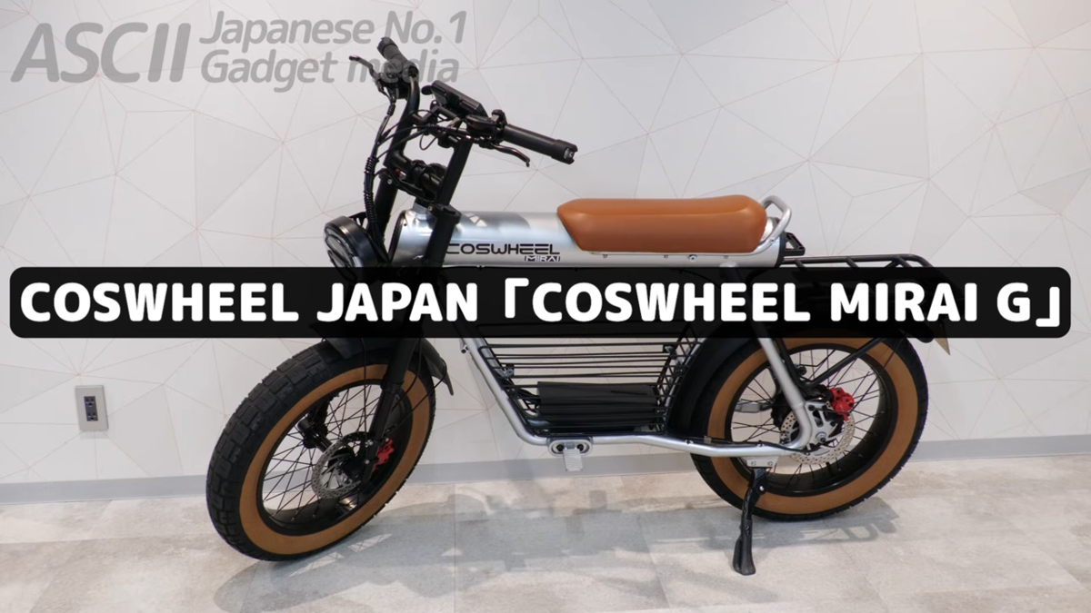 COSWHEEL MIRAI Gを一目見てまず感じるのは、とにかく“バイク感”の強いビジュアルです。電動キックボードのイメージとは一線を画す、極太タイヤとフレームデザインはかなりインパクトがあります。