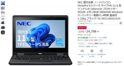 【Amazonタイムセール】NEC 11.6型ノートPC「VersaPro Eシリーズ タイプVR」をチェック!