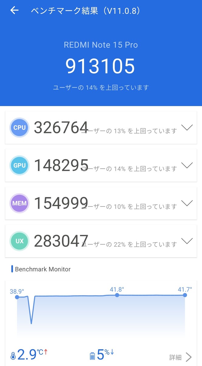 REDMI Note 15 Pro 5Gの基本スペックを簡単に紹介します。ディスプレーは6.83型とかなり大きめな有機EL。リフレッシュレートは120Hz対応で滑らかにスクロールします。CPUにはMediaTekのDimensity 7400-Ultraを搭載。普段使いに十分な性能を持っています。