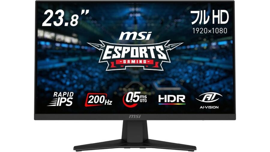 MAG 244Fは、リフレッシュレート200Hzと応答速度0.5ms(GTG)が特徴のゲーミングディスプレー(Amazon限定モデル)。従来のIPSパネルよりも4倍速いというRapid IPSを搭載するほか、映像の明暗部分をリアルに表現するHDR、映像の明るさやコントラストなどを自動で最適化してくれるAIビジョンなどが特徴となっている。