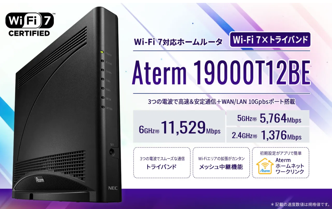 Aterm 19000T12BEは、単に「速いルーター」というだけでなく、これから数年先の通信環境まで見据えて設計された1台です。Wi-Fi 7や10GbEポートといった先進的な要素は、現時点ではオーバースペックに見えるかもしれません。