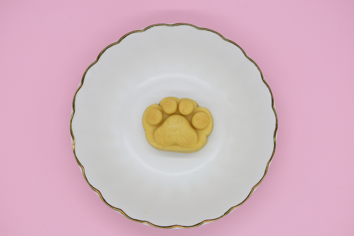 見た目が肉球そのもので、触れてみると「ぷにっ」とした触れた感じも肉球のようで、たまらない気持ちになりました。食べるのがもったいないくらいかわいい肉球型。