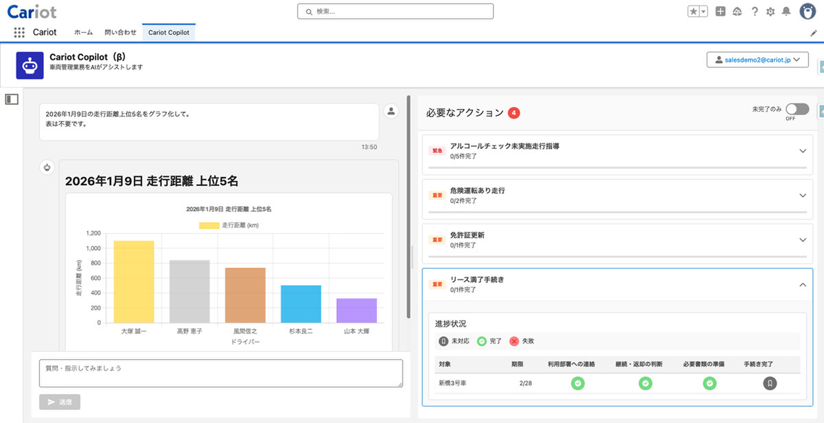 コミュニケーション支援もしてくれるAI機能「Cariot Copilot」