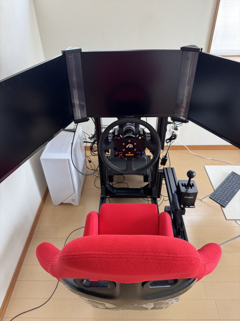 私が使用しているシミュレーターは、3画面の平面ディスプレイ構成です。ベゼルフリーキットを装着することで、ディスプレイ間の境目が気になりにくくなり、視界が自然につながるため、没入感が大きく向上しました。