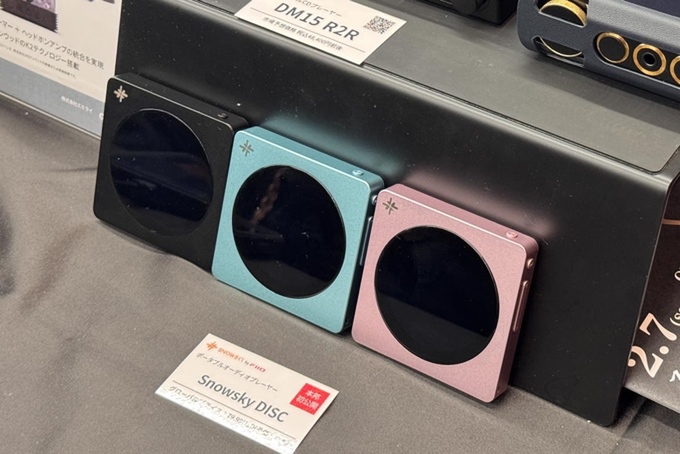 弩級の製品が目立つが、気軽に使えるオーディオ製品も多数展示されていた。FIIOの「Snowsky DISC」はポケットサイズでコンパクトなエントリークラスDAP。海外価格は税別で79.99ドルとのこと。3色のカラーバリエーションがあり、2TBのmicroSDカードを使用可能。