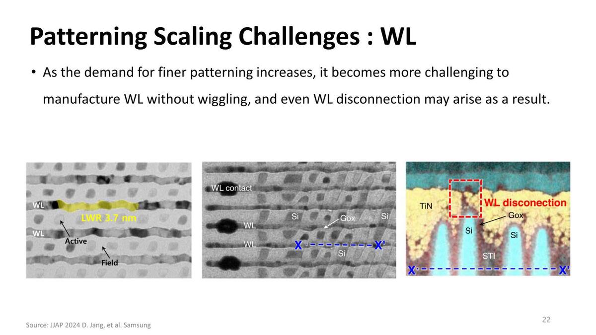 具体的に言えば、BL(Bit Line:ビット線)もセルの微細化でスペースが厳しくなっているし、WL(Word Line:ワード線)も微細化で作るのが難しくなりつつある。