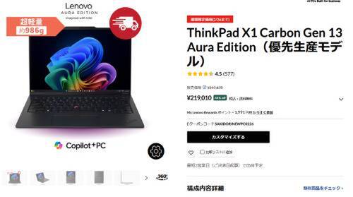 ThinkPad X1 Carbon Gen 13 Aura Edition(優先生産モデル)