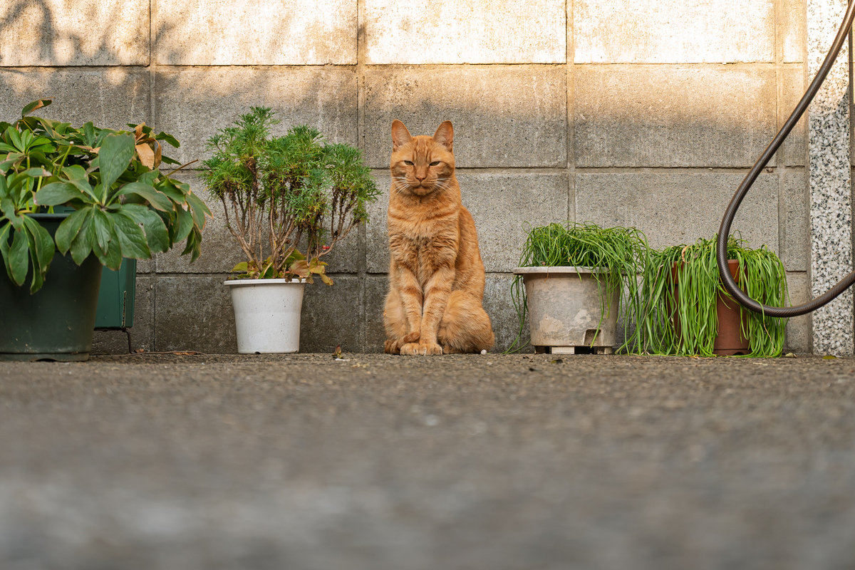 さっきまで日向にいたはずだった猫。地面すれすれから狙ってみた。