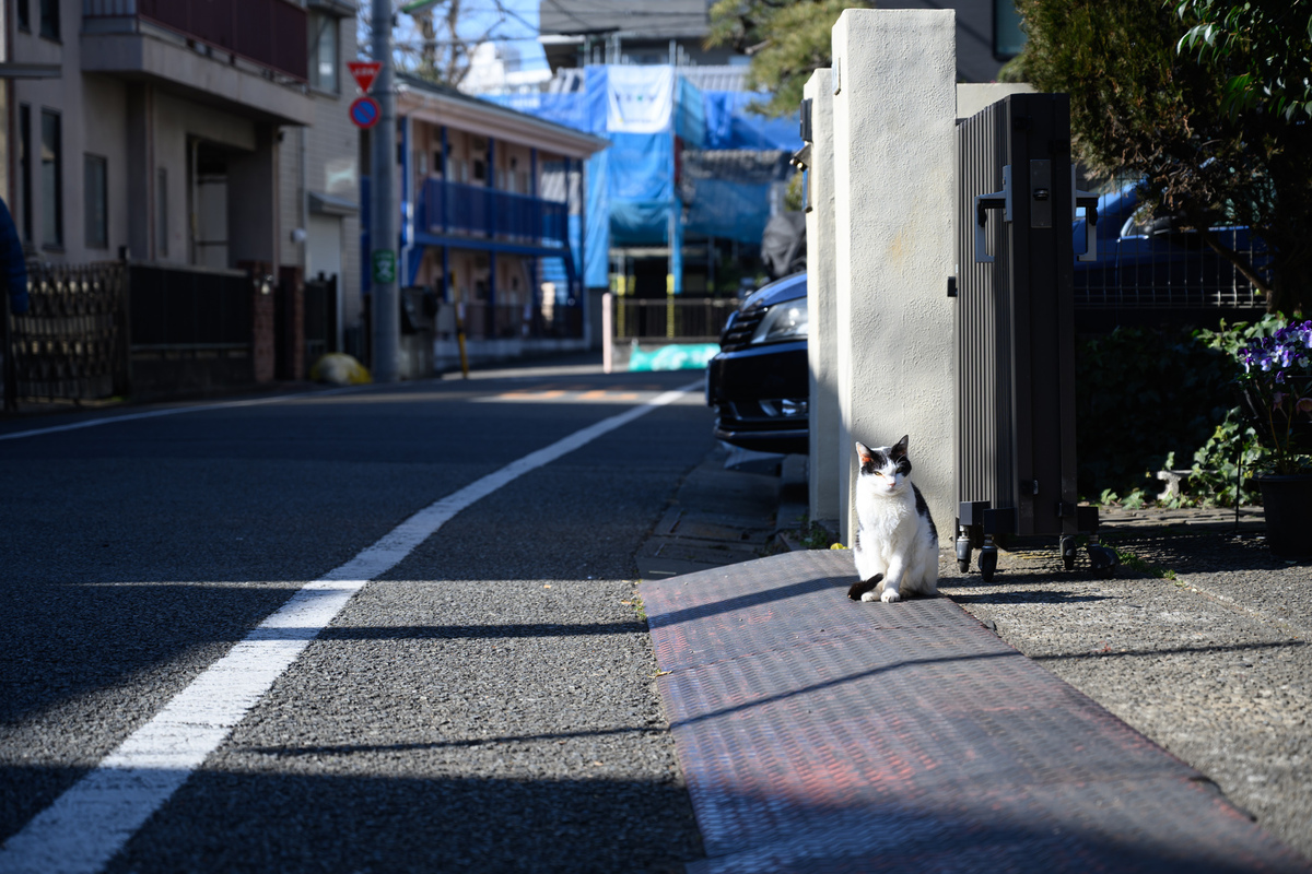 よく晴れた冬の日、バッグにNikon ZRを入れてたらたらと歩いてたら猫がいた。真冬らしい、陽射しが当たる場所を選んで、ちょこんと座っていたのである。日向に猫。冬はそのちょこんがうれしいですな。