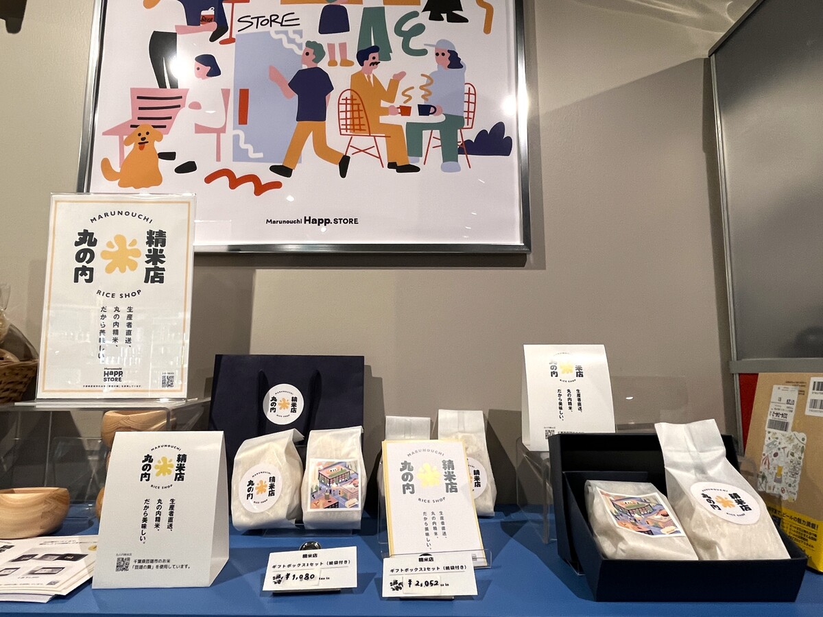 丸の内精米のお米は、お店で提供されるだけではなく、お米のギフトボックスとして販売もしているので家庭でも食べることができます。取り扱っている『Marunouchi Happ.STORE』のスタッフさんによると、手土産として購入していくビジネスマンの方が多いとのこと。確かに丸の内産のオリジナルギフトってありそうでなかったかも。
