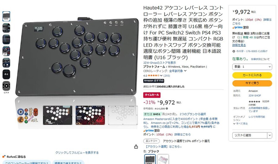 Amazon.co.jpにて、Haute42のレバーレスコントローラー「U16 ブラック」が販売中だ。参考価格は1万4399円だが、タイムセールにより31%オフの9972円で購入できる(2月10日時点)。