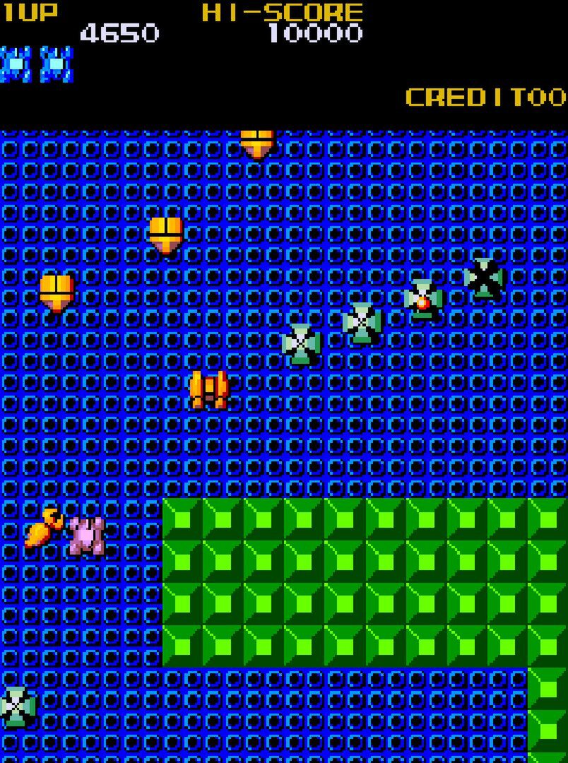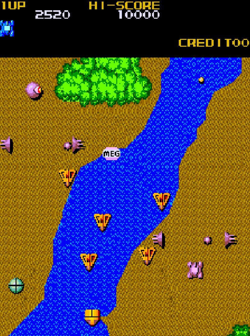 『メガゾーン』は、1984年に発売されたシューティングゲーム。戦車を操縦して敵基地を目指して進んでいき、最奥のコアを破壊することがゲームの目標となる。アイテムを集めると2台の戦車が合体してパワーアップ! 未知の敵との戦いに備えて力を手に入れよう。