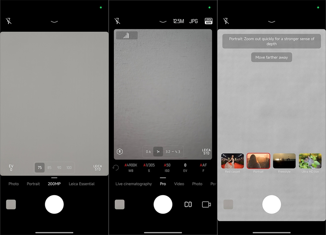 プロモードではシャッターボタン右の「CO」アイコンをタップすることで複数の設定をプリセットしておき、撮影状況に合わせて素早く切り替えもできる。そしてライカ・シネマトグラフィーモードでは、歩く人のズーミングを行なう「レッドカーペット」モードなど、印象的なショートクリップの撮影が可能だ。