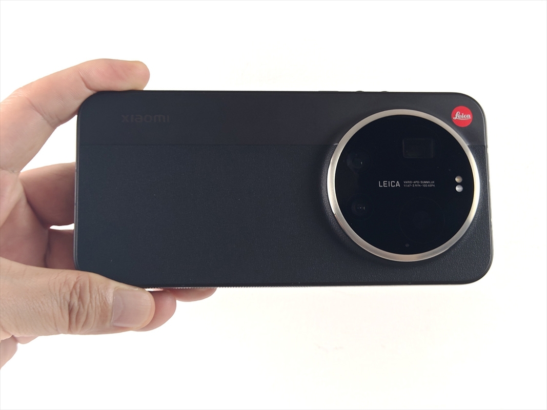購入したモデルはブラックで、背面は上側にXiaomiのロゴ、カメラ右上にライカロゴが配置されている。下側は若干シボをつけた仕上げで滑り止め効果とカメラ風の外観としている。