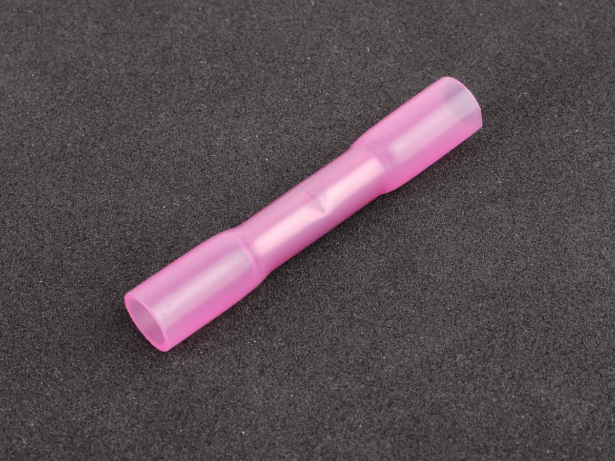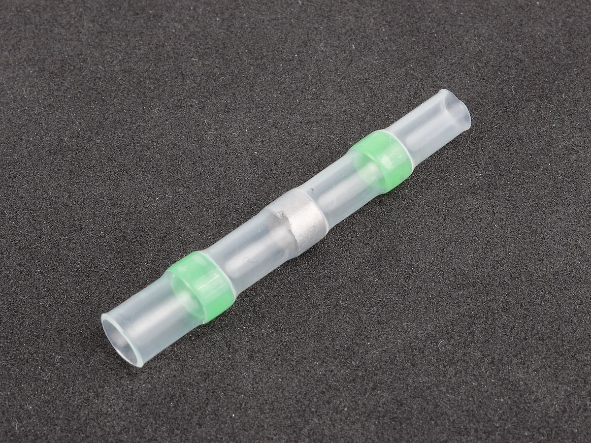 ただし、ハンダ付けは基本的にハンダごてが必要となるため、屋外では作業がしづらいことが多いです。この欠点を克服しているのが、リング状の低融点ハンダを熱収縮チューブの中央にセットした、「はんだスリーブ」。ケーブルの接続部を通し、ライターなどで加熱することで、ハンダ付けと熱収縮チューブによる保護が同時にできるという優れモノです。