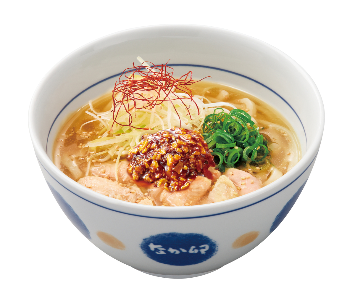 スープは関西風のうどんだしに、コクのある鶏油(チーユ)やニンニクをきかせた“藻塩の塩だれ”を加え、コク深い味わいに仕上げている。鶏の旨みがたっぷり詰まったスープと柔らかい鶏肉、食感の良い白髪ねぎが織りなす、やみつきになる味わいだという。