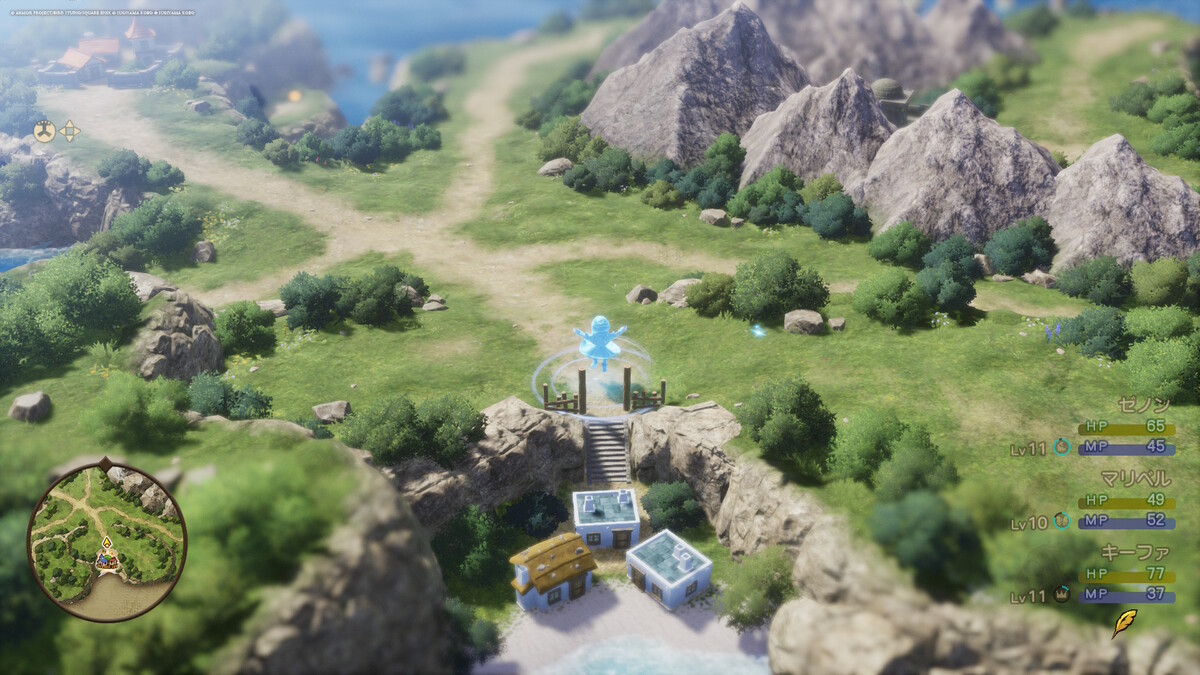 ちなみに本作、リメイクにあたって快適性を重視したためか、主人公が最初から「ルーラ」を習得しているほか、家の中や洞窟など屋根のある場所でもいつでもファストトラベルできるようになった。