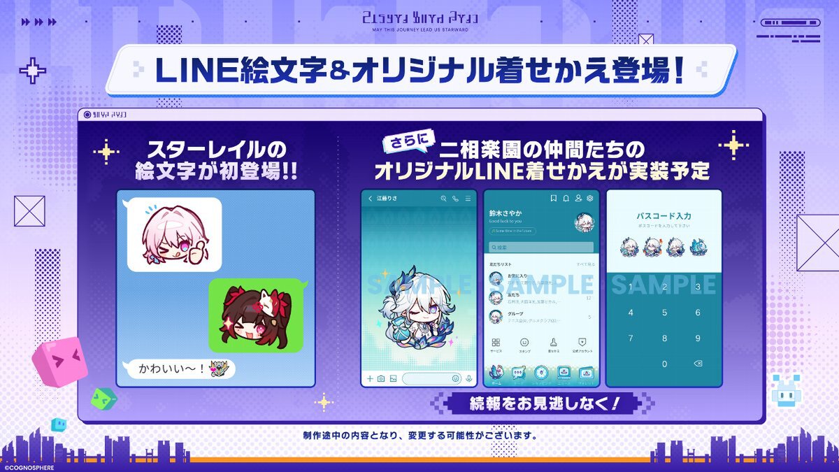 スターレイルの絵文字が初登場。さらに、二相楽園の仲間たちのオリジナルLINE着せかえが実装予定だ。こちらもお楽しみに。
