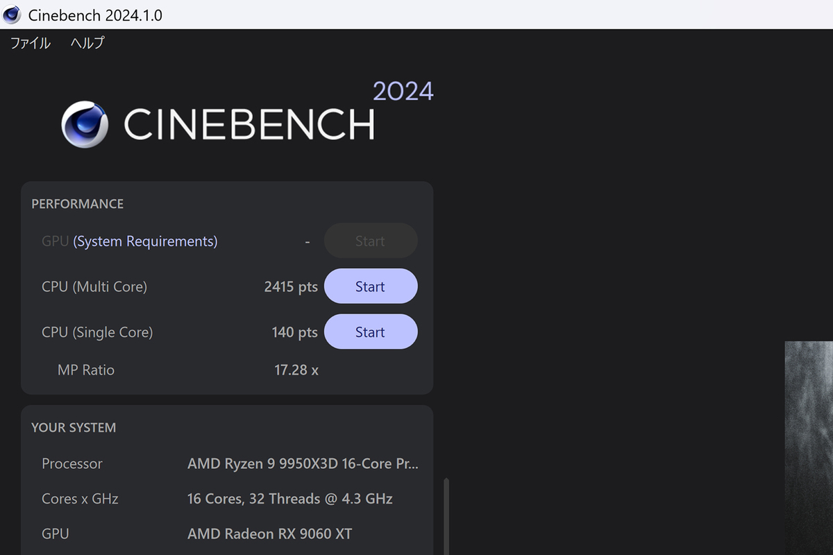 「B850 Rock WiFi 7」をPCケースに組み込み、CPUがフルロードされる「Cinebench 2026」などのストレステストを実行したが、Ryzen 9 9950X3Dのパフォーマンスを問題なく発揮していた。