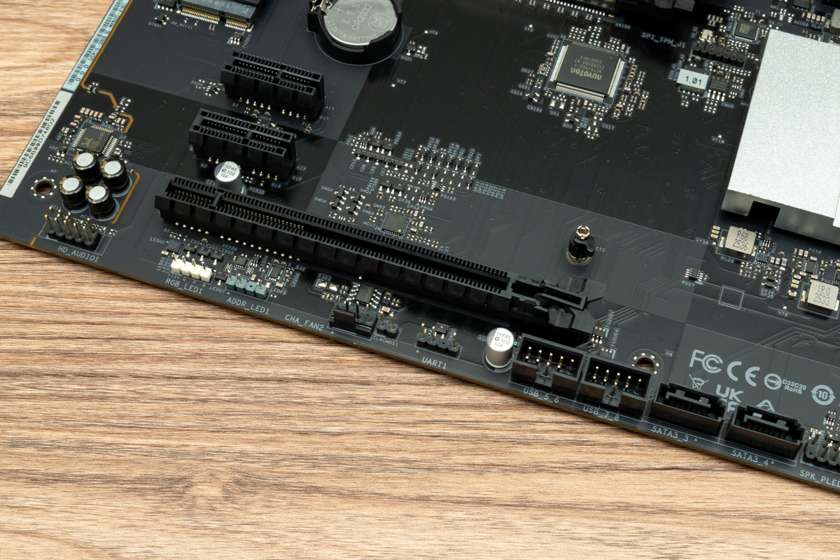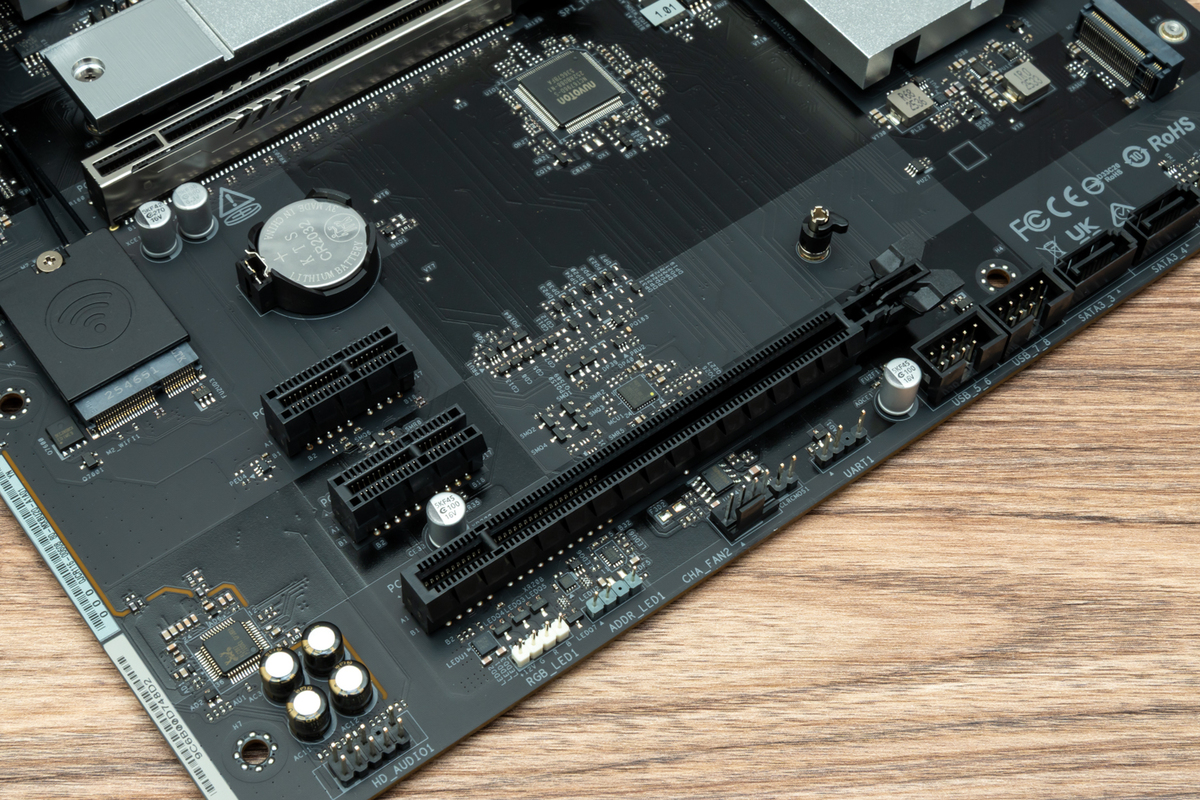 PCIe拡張スロットやUSBポートの数から、ファン用PWMコネクターやアドレサブルRGB LEDヘッダーピンの配置など、「B850 Rock WiFi 7」を隅々まで確認していこう。