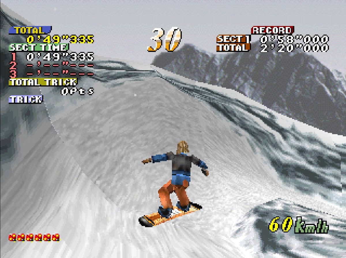 『クールボーダーズ』は、1996年にウエップシステムから32ビットの家庭用ゲーム機向けに発売されたスノーボードゲーム。雪山を猛スピードで滑走する面白さを3Dで表現している。