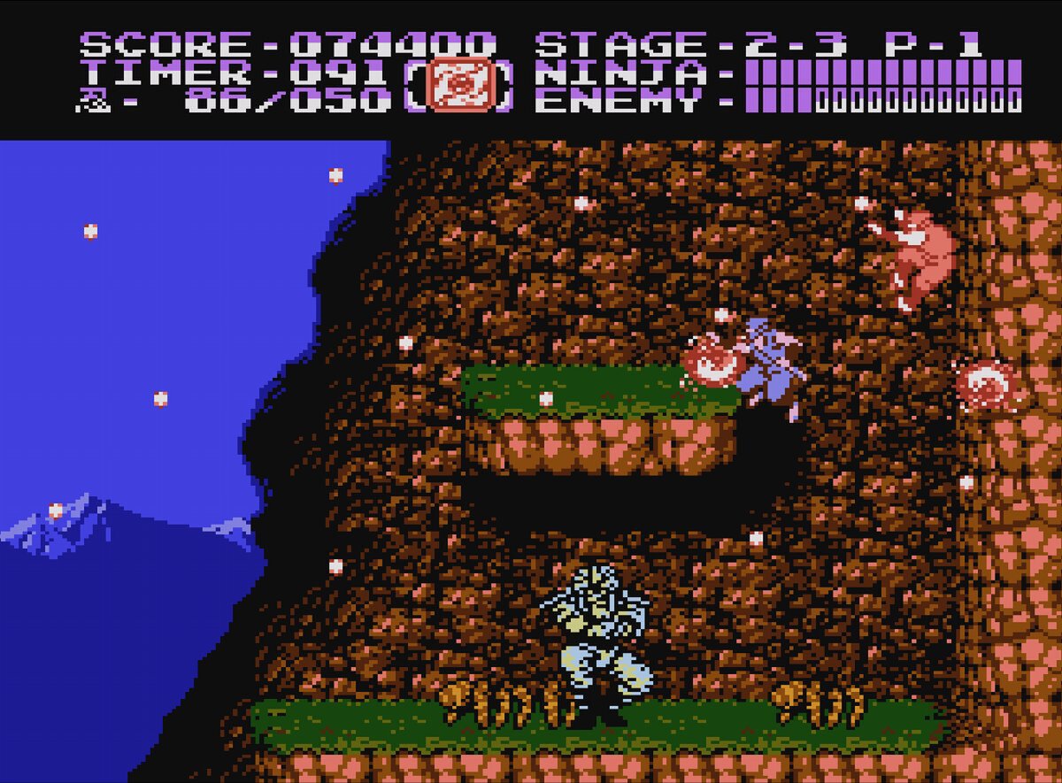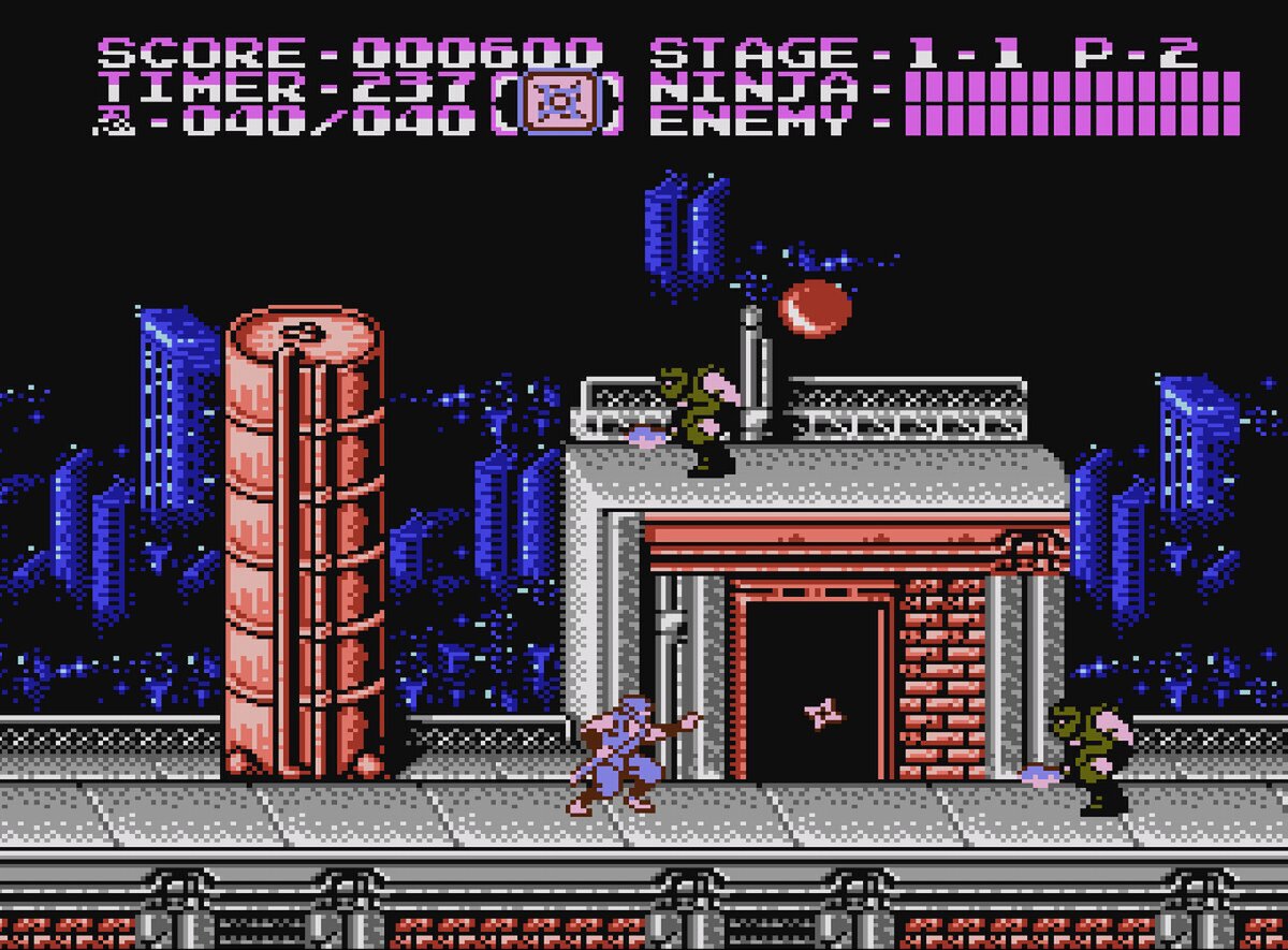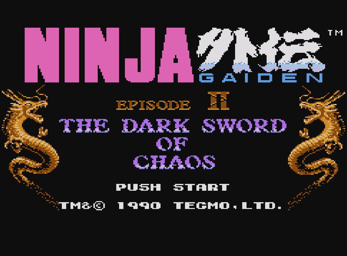 『忍者龍剣伝II 暗黒の邪神剣』は、1990年にテクモから8ビットの家庭用ゲーム機向けに発売された横スクロールアクションゲーム。龍の忍者ことリュウ・ハヤブサが、邪神の復活を止めるために刀と忍術で戦っていく。
