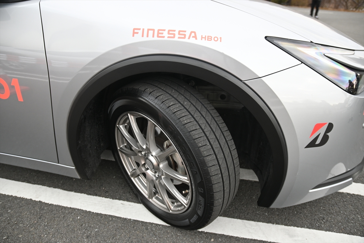 続いて試乗したのが新世代のエントリータイヤとなる「フィネッサ HB01」です。まったく新しい製品で、ワンランク上の心地よさ(FINE)と安心・安全(SAFETY)を提供することが狙いで、そこに製品名の由来があると説明されました。