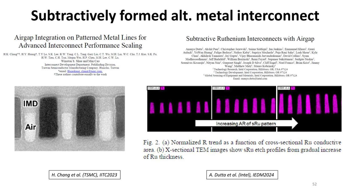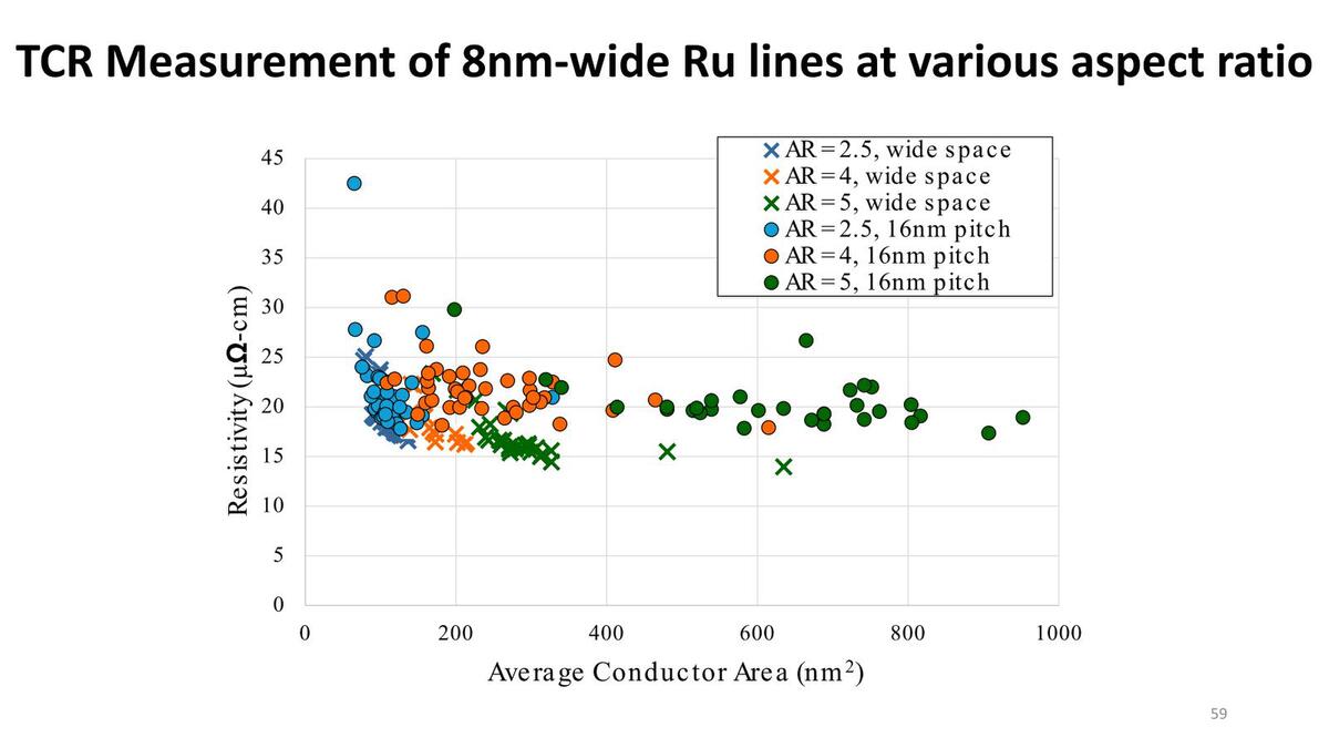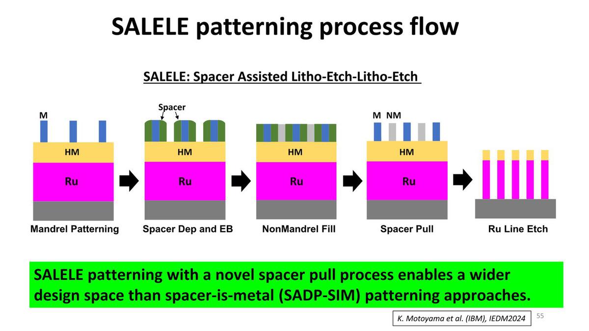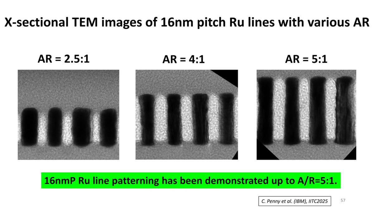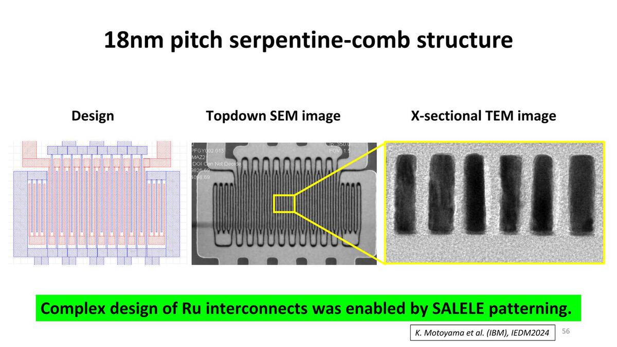 ただ、さらにアスペクト比を上げる方法としてSALELEも提案されている。このSALELEを利用することで、高アスペクト比のRu配線が実現できる、としている。