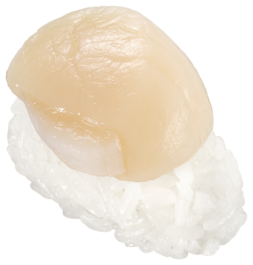 寿司ネタのほか、ラーメンやスイーツまで北海道産素材をテーマに揃えたフェアとなっています。特に、北海道の冷たい海で育ったほたての貝柱に注目です。