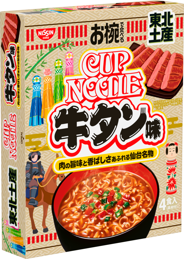 今回、新たなラインアップとして「お椀で食べるご当地カップヌードル 東北土産牛タン味 4食入り」を発売する。