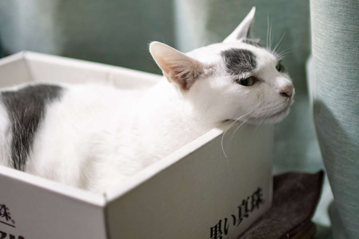 ほかの猫はというと、以前飼っていた大五郎は顎のせが好きだった。箱などに入るとこのように顎をちょんとのっける。これが快適なのだろう。