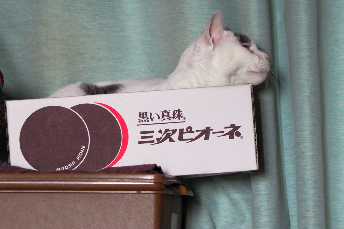 顎のせのほうが可愛いといえば可愛いので、まあよしとするか。ちなみに、顎のせ猫は真横から、あるいはちょっと下から撮るとより可愛い。