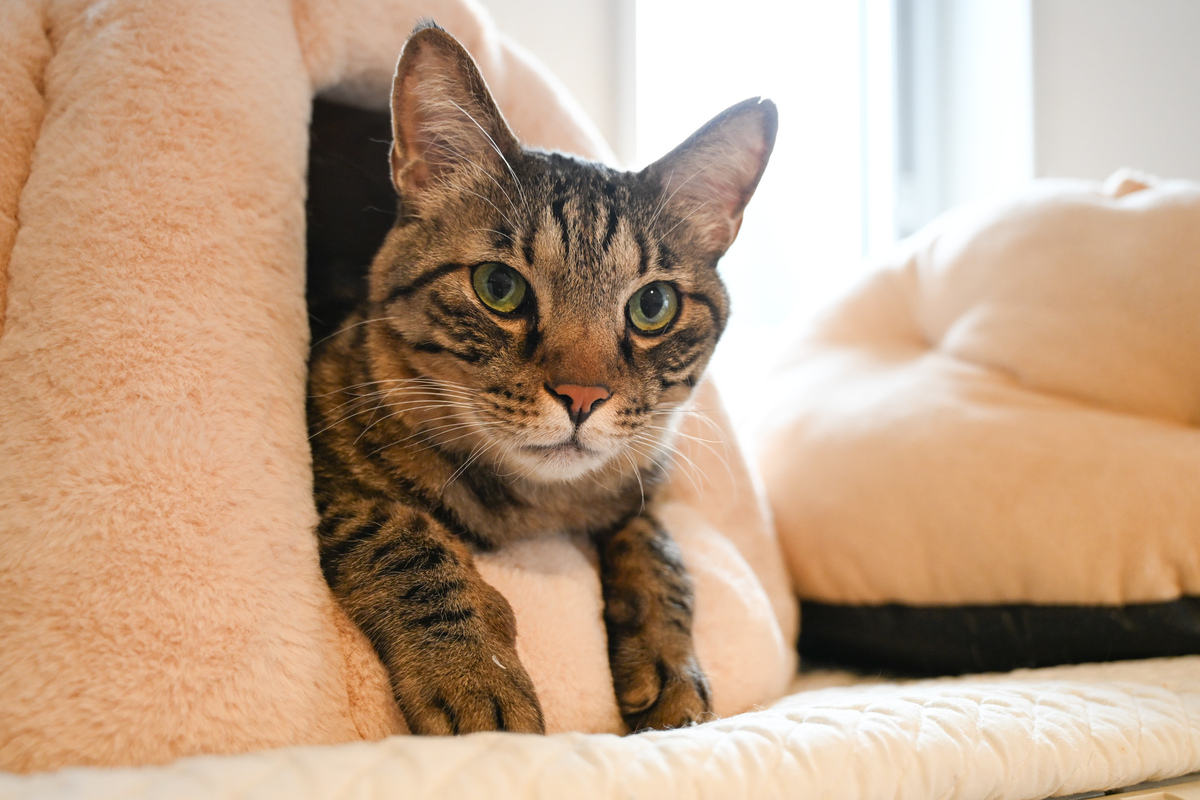 気になったので、ほかの猫写真もチェックしてみた。両前足をちょこんと乗せる派vs顎を直接乗せちゃう派。保護猫シェルターqueueの猫は、猫ハウスから両前足と顔だけをちょこんと出してた。うちのテトラと同じだ。そういえばどちらもキジトラ。
