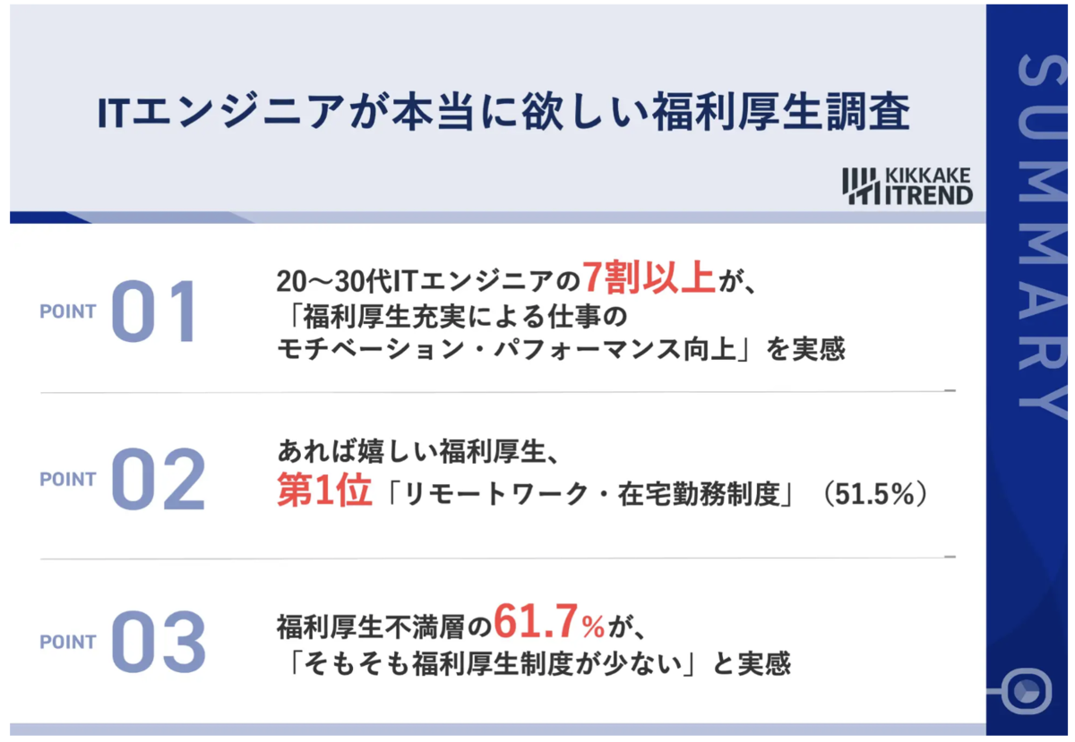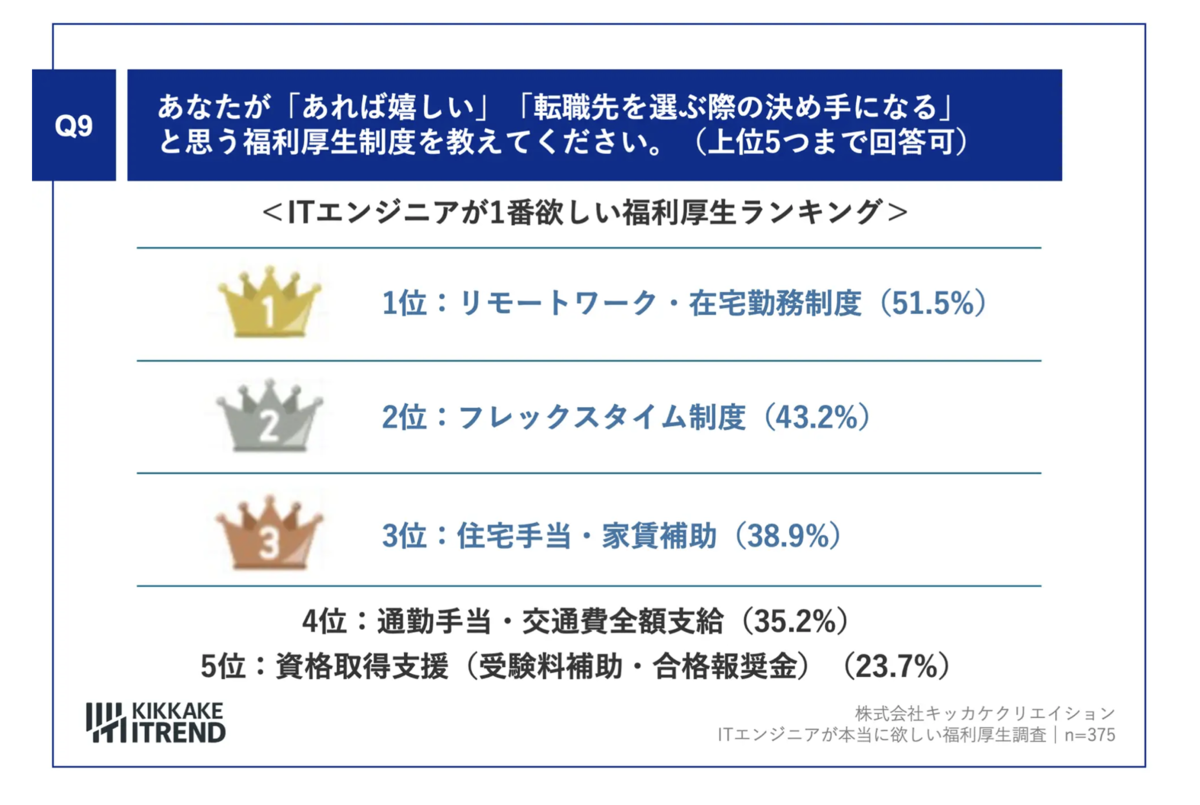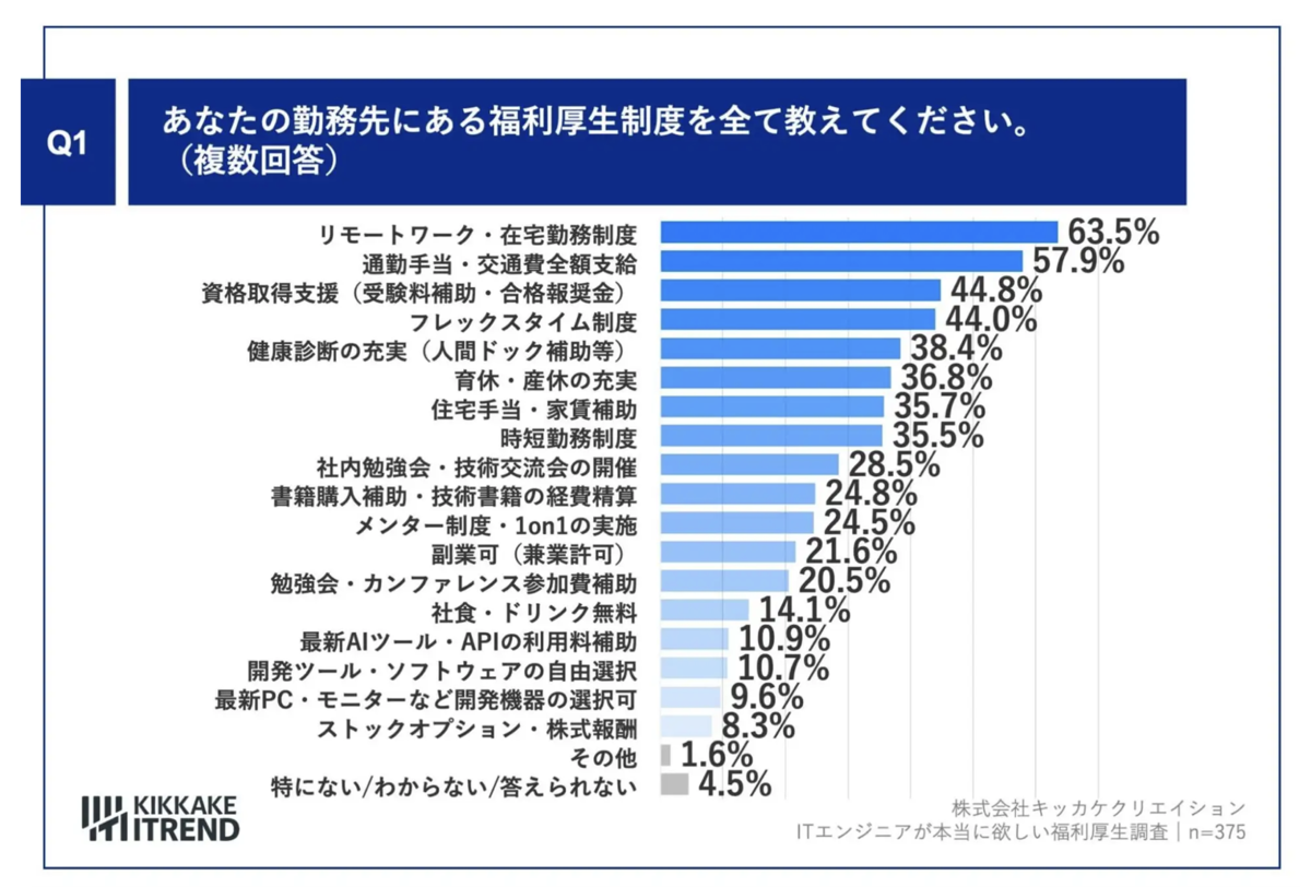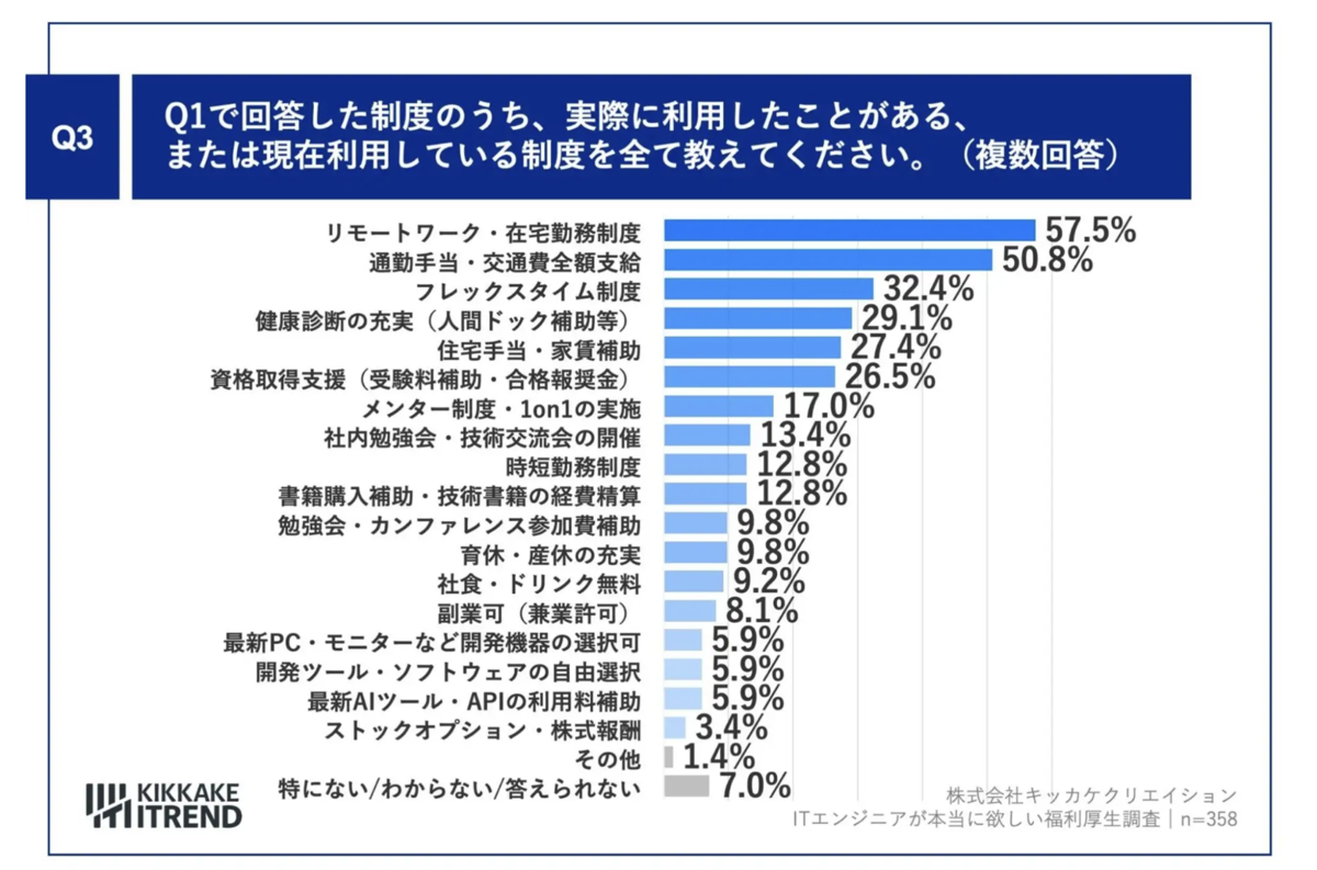 ■キッカケクリエイション、ITエンジニア対象に「欲しい福利厚生」を調査