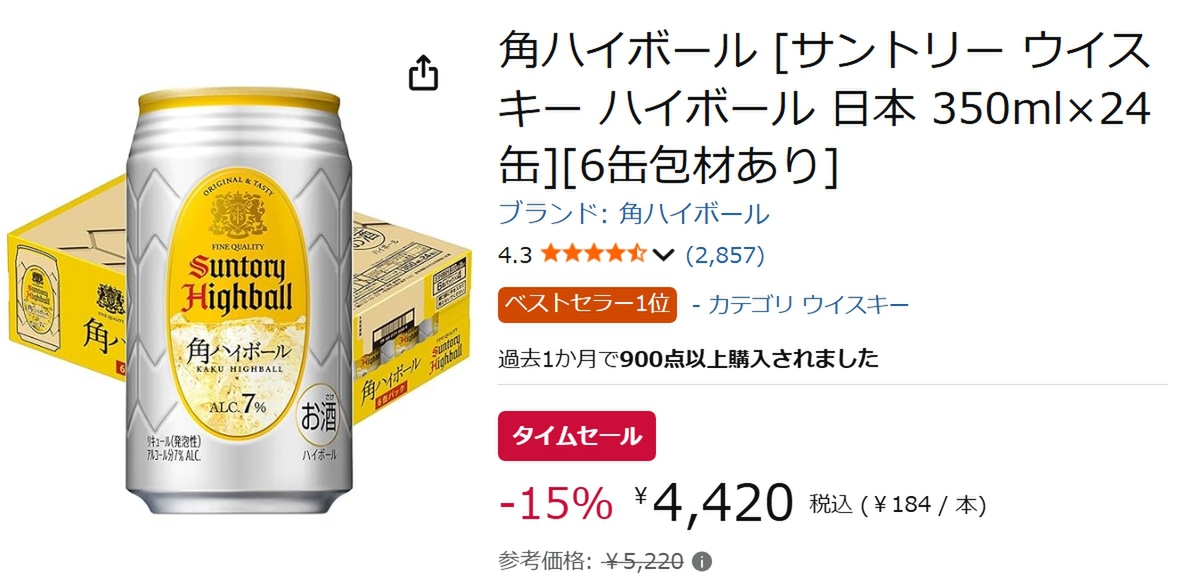 日常的にハイボールを飲む人にとってはおトクに購入できるタイミングとなっています。期間限定のAmazonタイムセールを活用し、この機会にまとめ買いしてみては?