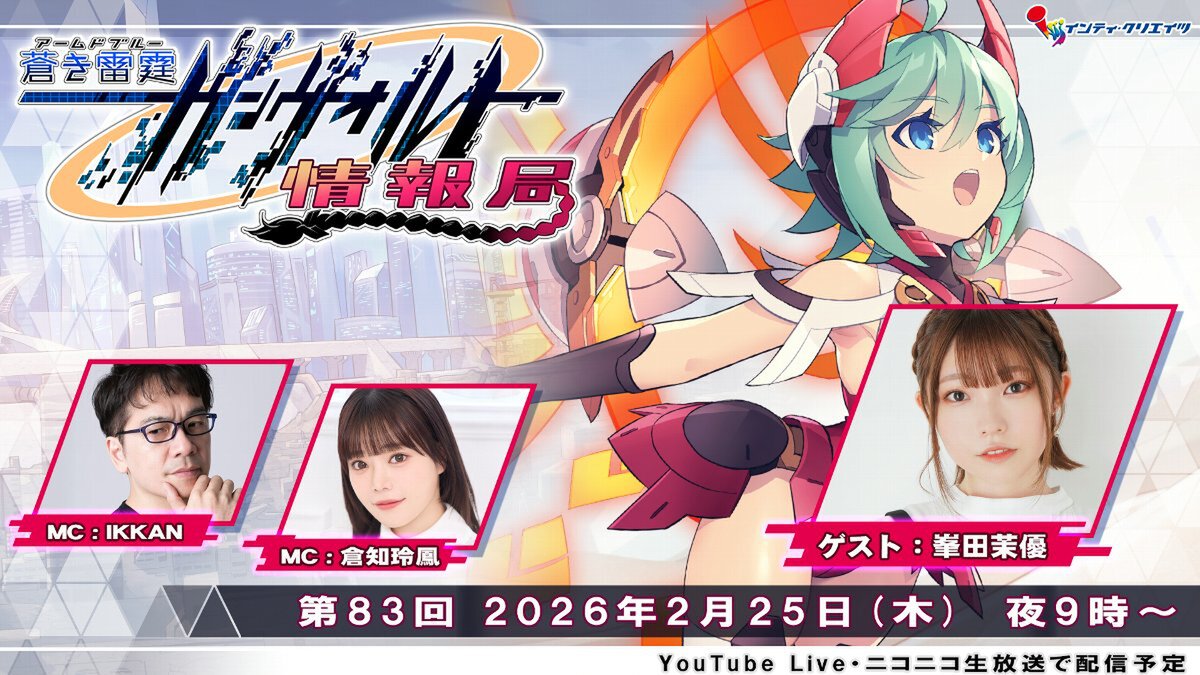 インティ・クリエイツは2月18日、2D横スクロールアクションゲーム「蒼き雷霆(アームドブルー) ガンヴォルト」の最新情報を伝える公式番組「ガンヴォルト情報局第83回」を配信すると発表。配信日時は、2026年2月25日21時より。