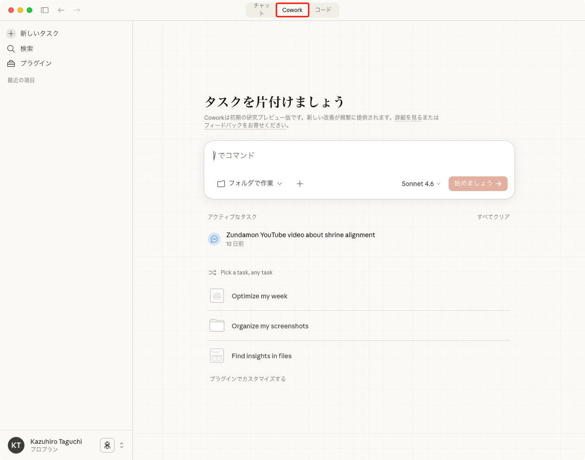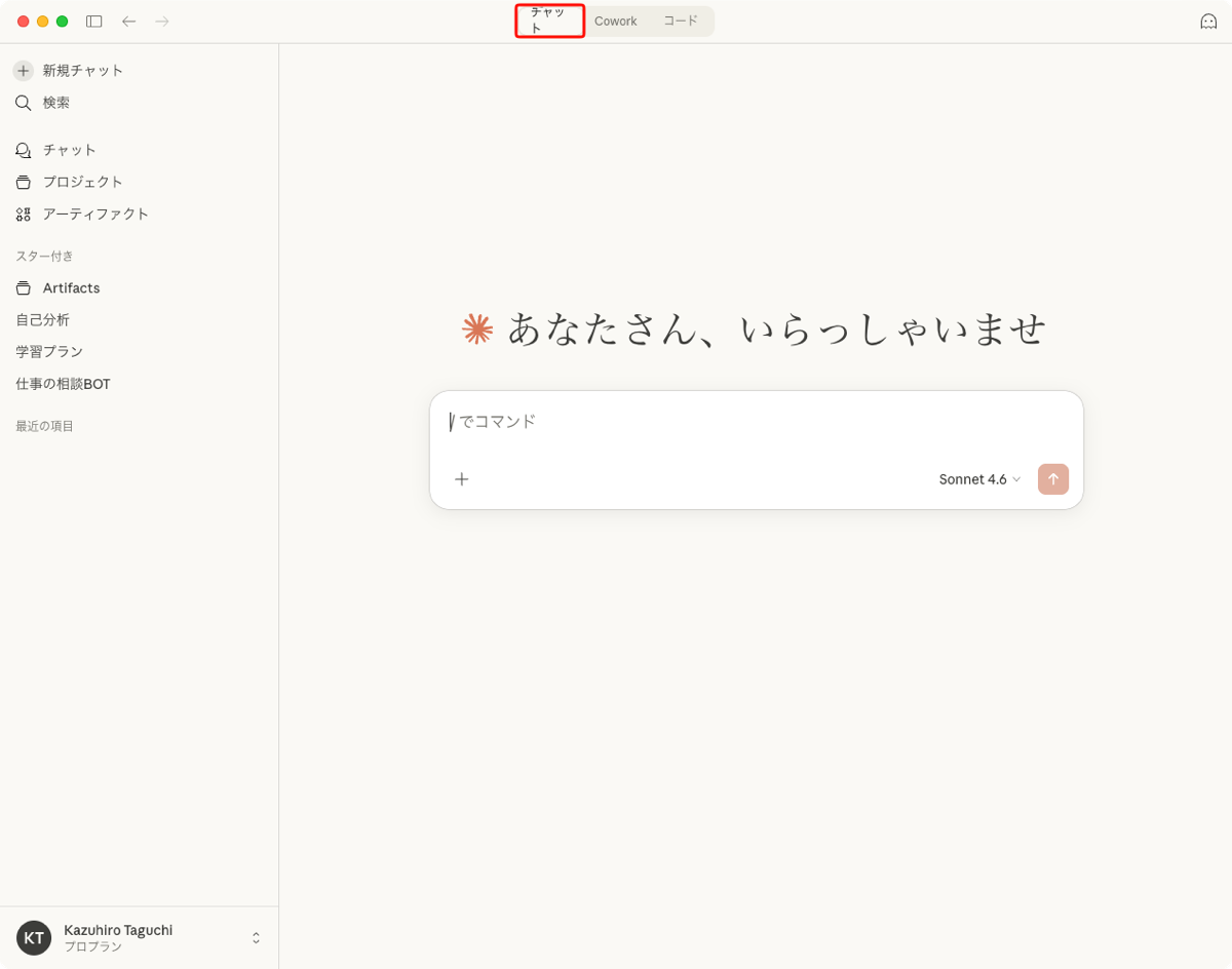 Chatは従来型の対話モードだ。Claudeと自然言語でやり取りし、質問応答、要約、翻訳、企画の壁打ちなどに使う。ファイルを添付して解析することはできるが、ローカルフォルダへ常時アクセスして作業を実行する仕組みではない。あくまで入力に対して応答を返す形式で、従来のWeb版Claudeとほぼ同じ使い勝手だ。