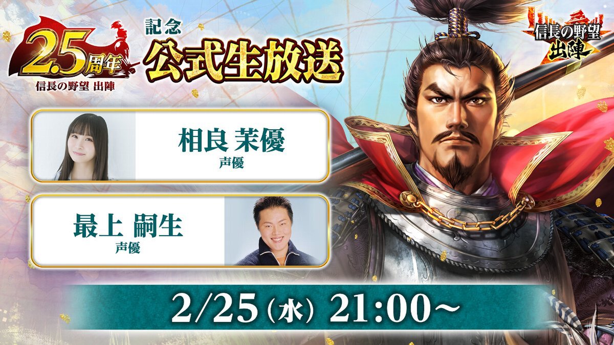 コーエーテクモゲームスは2月18日、iOS/Android向け位置情報ゲーム『信長の野望 出陣』について、ウェブ生放送番組“『信長の野望 出陣』2.5周年記念公式生放送”の実施を決定したと発表。配信日時は、2026年2月25日21時より。