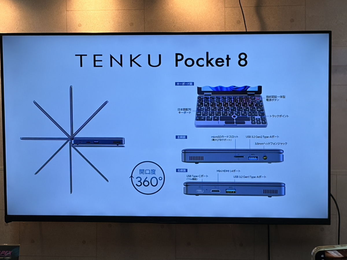 TENKU Pocket 8は2月26日発売で、価格は9万4800円。先行販売もスタートしており、2月24日9時59分までの先行販売限定価格は8万4800円。