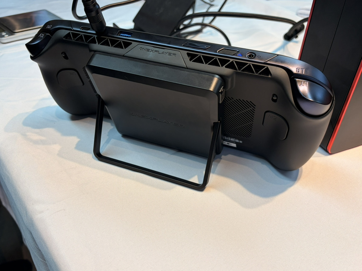 また、物理的な機構として「スナップオン式バッテリー」を採用。工具なしでバッテリーの着脱ができるため、装着・脱着も簡単となるほか、外出先でも最小限の停止時間で稼働時間の延長が可能。バッテリーには背面スタンドも備えられているため、立てながらゲームすることも可能だ。