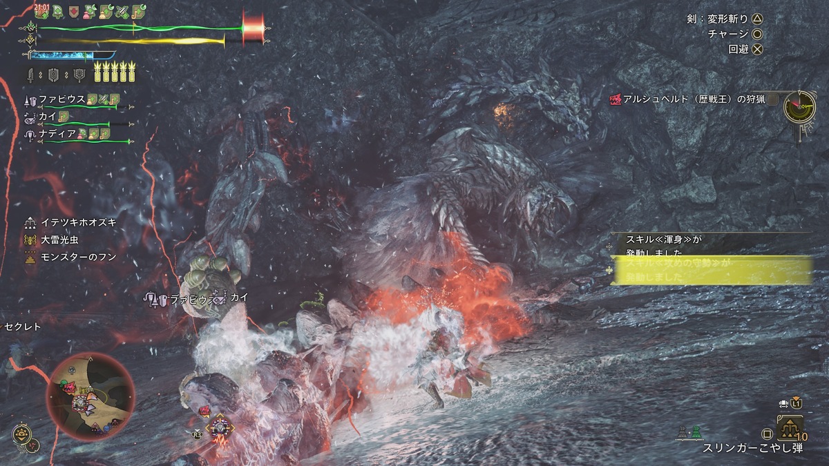 歴戦王アルシュベルドが待つのは、竜谷の跡地の最奥。メインストーリーでも訪れた思い出の場所だ。接敵するやBGMが切り替わり、そのカッコよさにテンションブチ上がり。夢中になって狩猟してたらスクショを忘れる始末。