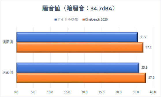 | アイドル状態 | 35.5 dBA | 35.9 dBA |