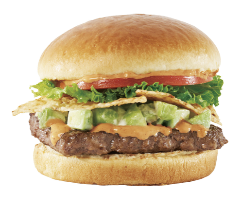 濃厚なアボカドマヨとコブマヨソースに、パリパリのトルティーヤチップス、トマトやレタスでフレッシュさをプラスした、手軽なサイズ感の春限定バーガー。