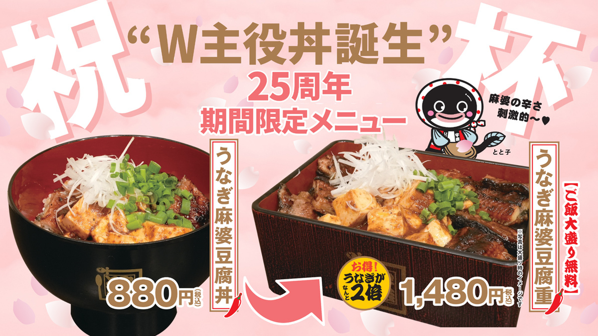 うな丼チェーン「名代 宇奈とと」は、2月25日から3月22日までの期間限定で、新メニュー「うなぎ麻婆豆腐丼」と「うなぎ麻婆豆腐重」を販売します。