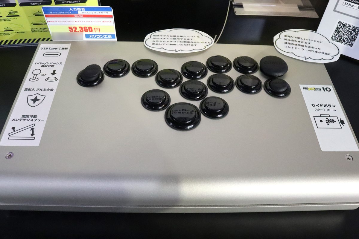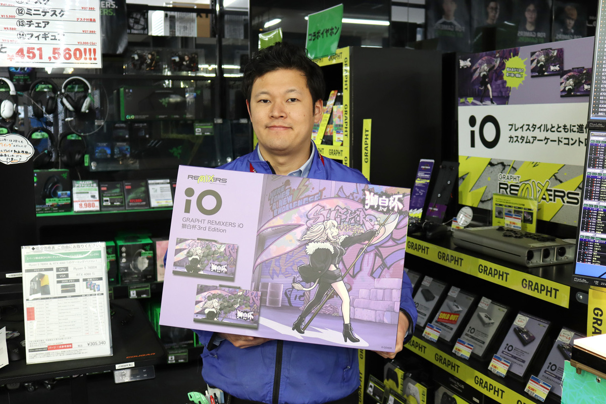 大阪・日本橋のPCパーツショップ「パソコン工房 大阪日本橋店」を取材しました。店舗スタッフ・小山翔さんのオススメは、GRAPHT(グラフト)のアーケードコントローラー「iO 獅白杯3rd EDITION」です。