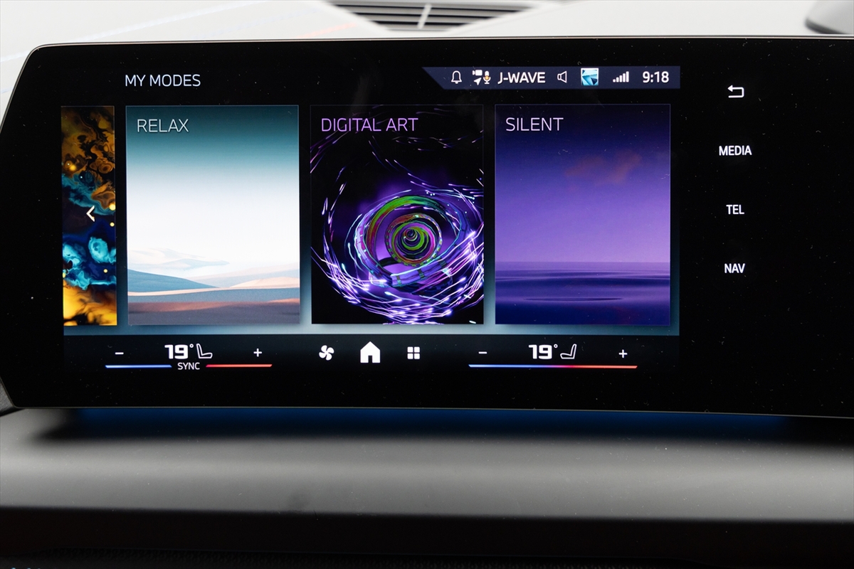 全体的に物理ボタンは少なめで、操作の多くはタッチスクリーンで行ないます。ボタンを作るより画面で操作した方がわかりやすく、それでいて部品点数も少なくなるのですが、個人的にはエアコンの風量はボタンで操作するほうがわかりやすいと思ったり。