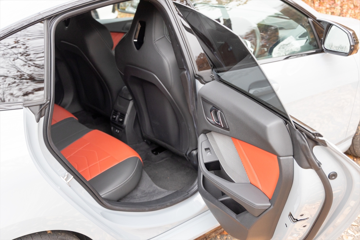 クーペスタイルながら、4枚ドアというグランクーペ。後席はちょっと狭く、そしてヘッドルームも少ないのは仕方のないところ。ですが居心地が悪いわけではありません。USB Type-Cポートは2系統用意されていますし、アームレストを倒せばドリンクホルダーもあります。ただ、サイドシルの幅が広めなので、足腰の不自由なお年寄りには辛いかもしれません。